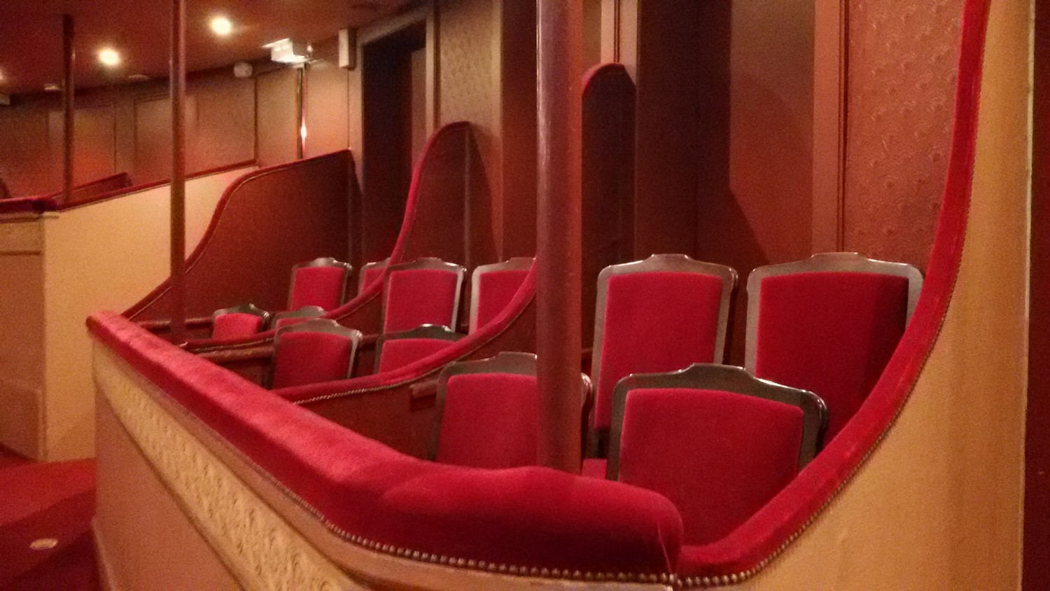 La salle de spectacle aux couleurs rouge et or, avec ses fauteuils en parterre, ses balcons, ses baignoires, son poulailler et son magnifique plafond peint par Jean-Julien LEMORDANT nous ont émerveillés !