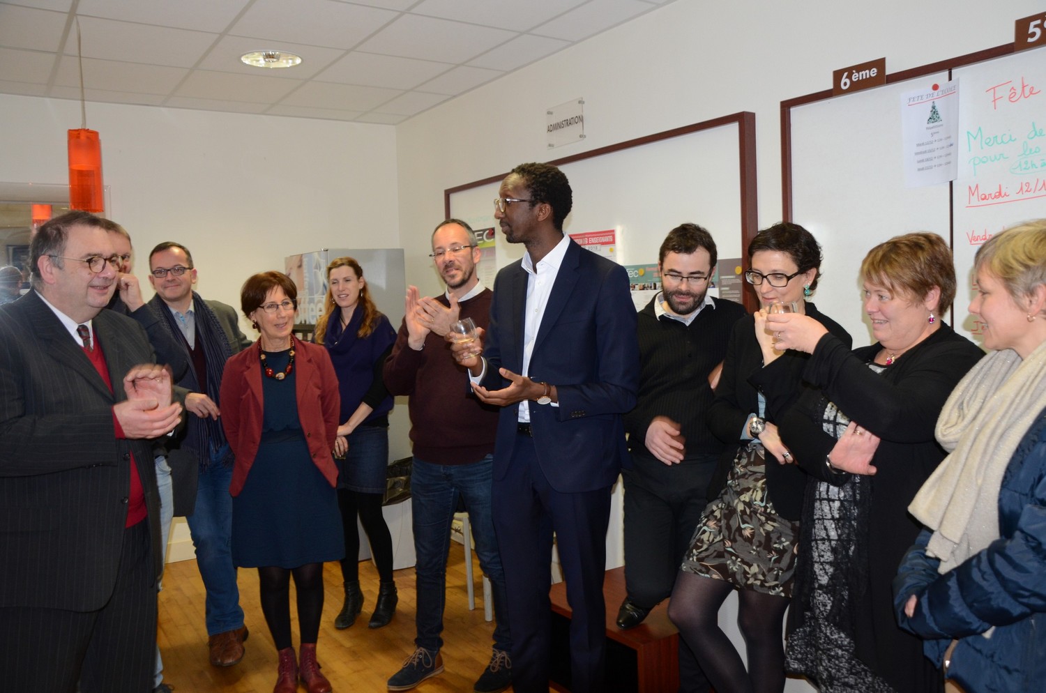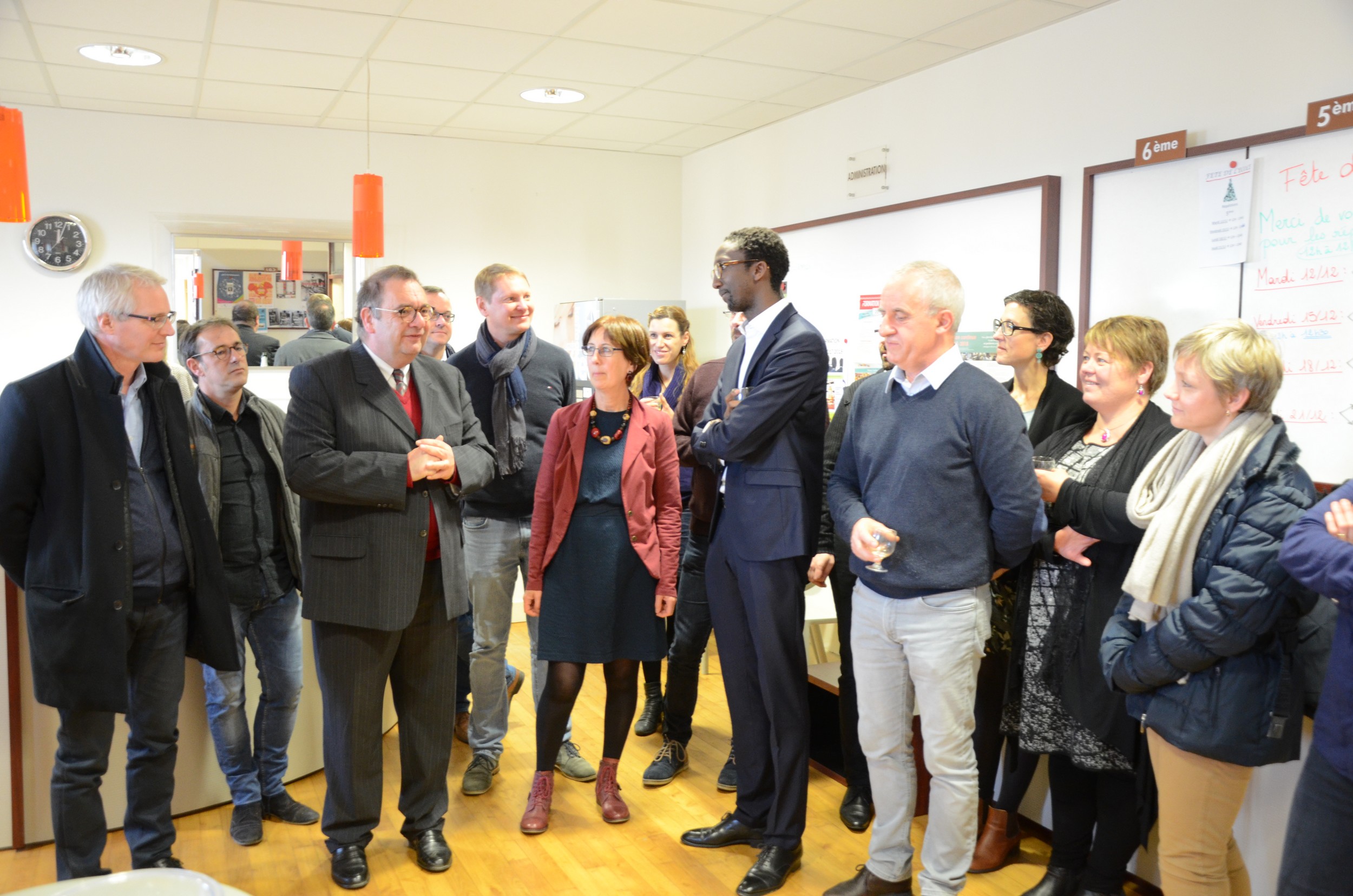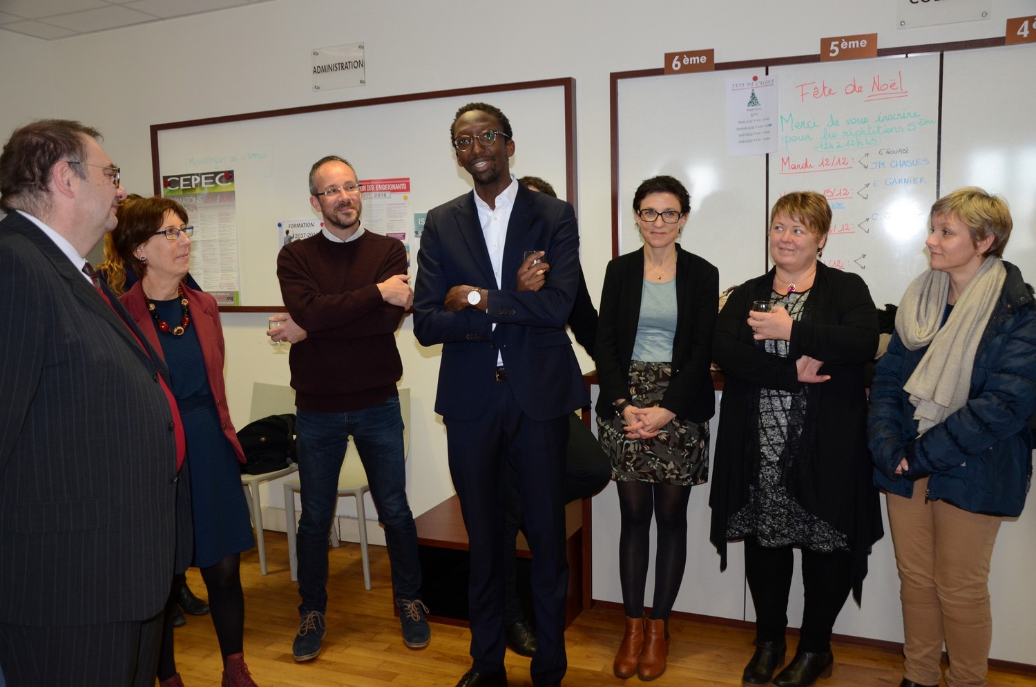 Il a été élève au collège de la Victoire de septembre 2001 à juin 2005, puis après une année de seconde au lycée Saint-Joseph à Lamballe, il est revenu à Dinan au lycée des Cordeliers pour y effectuer sa première et terminale S où il a obtenu son bac en 2008. Depuis, il n’avait pas remis les pieds au lycée. Mais entre-temps, il a été élu député de la circonscription de Dinan. C’était en juin dernier dans la foulée de l’élection du président de la République d’Emmanuel Macron, dont il est l’un des premiers soutiens. Hervé Berville, 27 ans, était invité lundi 18 décembre par le directeur M. Gerbel à rencontrer quelques-uns de ses anciens professeurs. L’échange s’est fait de manière assez informelle sur le coup de midi à la salle des professeurs. « C’est un vrai moment d’émotion » a dit le jeune député à ceux qui l’ont accueilli. « J’ai trouvé ici des professeurs qui m’ont fait grandir et qui m’ont permis de devenir ce que je suis. ». Le moment particulièrement chaleureux s’est poursuivi par le repas au cours duquel l’échange a été plus direct cette fois sur la question de la réforme du lycée et de l’enseignement supérieur. En quittant l’établissement, Hervé Berville a rencontré des élèves en classe d’anglais avec leur professeur M. Jouffe, un ancien camarade de lycée.