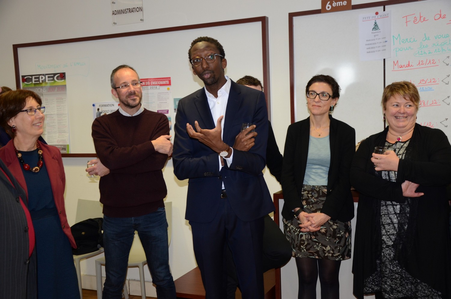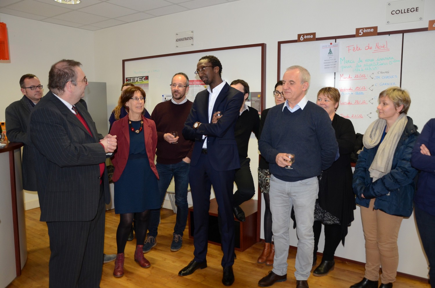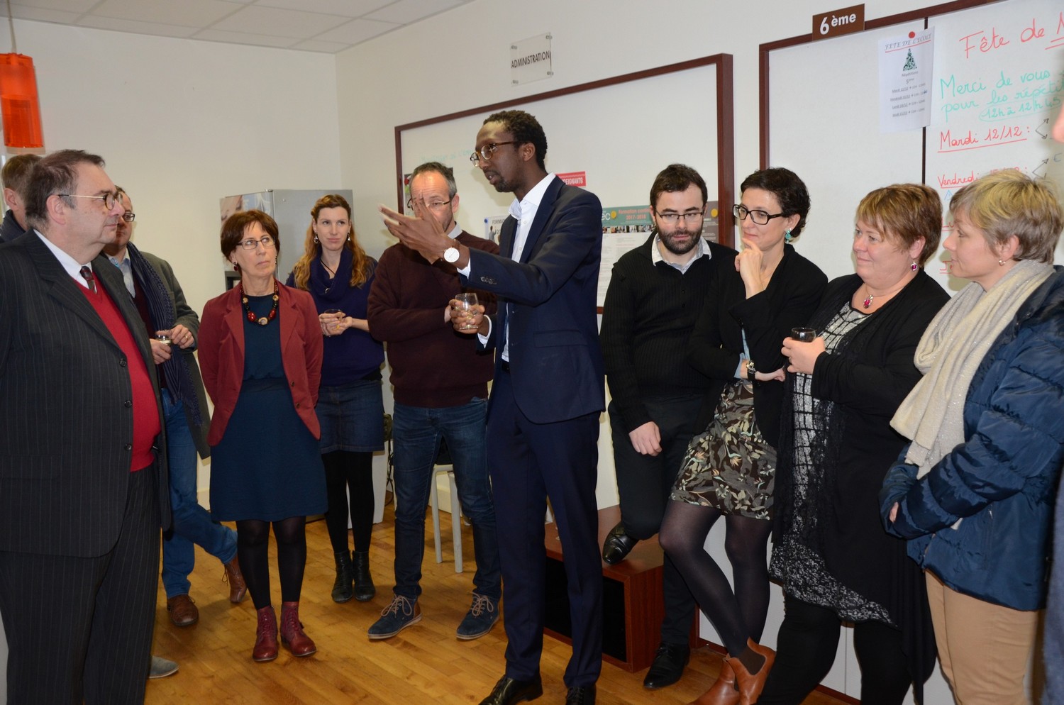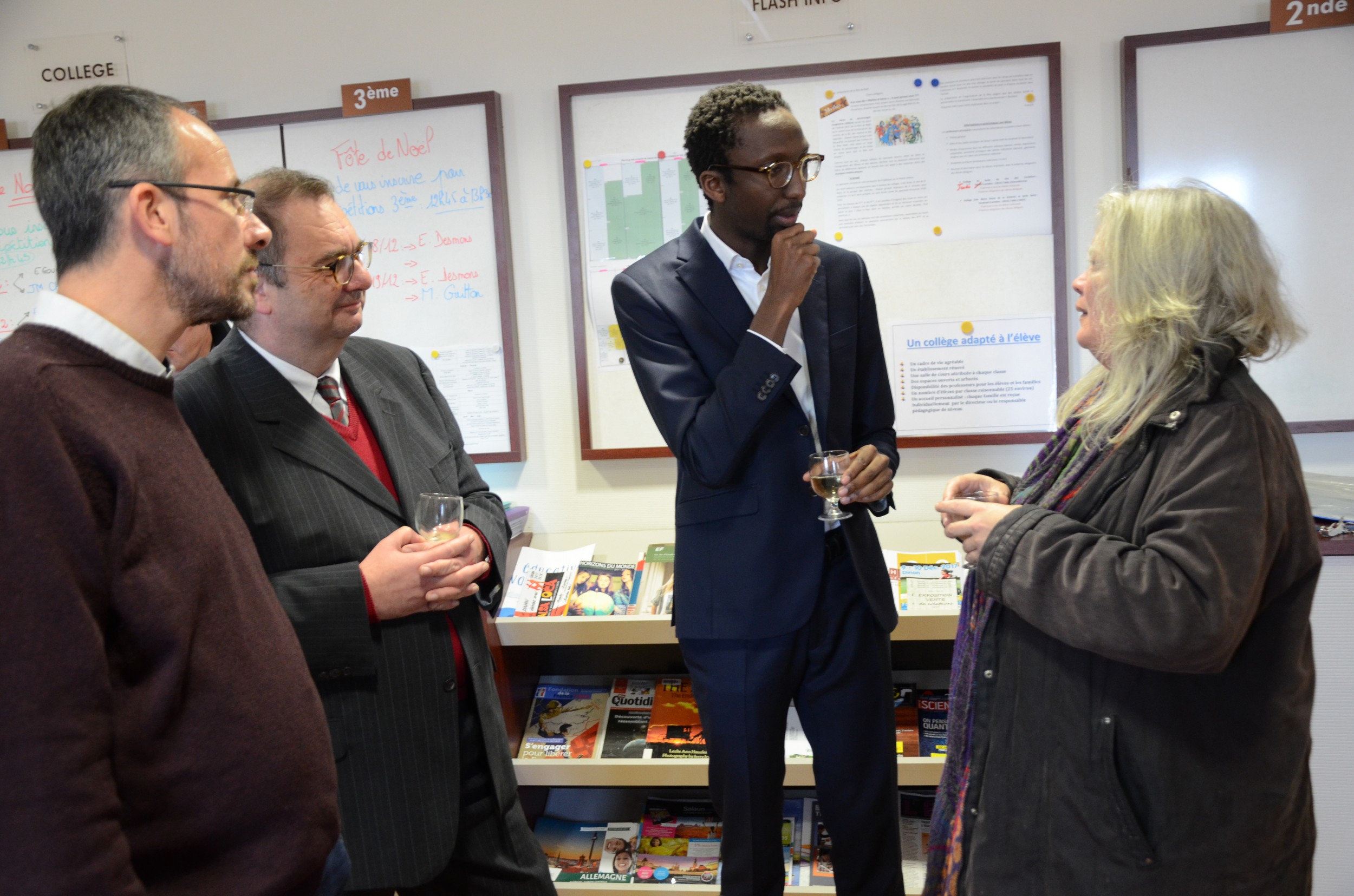 Il a été élève au collège de la Victoire de septembre 2001 à juin 2005, puis après une année de seconde au lycée Saint-Joseph à Lamballe, il est revenu à Dinan au lycée des Cordeliers pour y effectuer sa première et terminale S où il a obtenu son bac en 2008. Depuis, il n’avait pas remis les pieds au lycée. Mais entre-temps, il a été élu député de la circonscription de Dinan. C’était en juin dernier dans la foulée de l’élection du président de la République d’Emmanuel Macron, dont il est l’un des premiers soutiens. Hervé Berville, 27 ans, était invité lundi 18 décembre par le directeur M. Gerbel à rencontrer quelques-uns de ses anciens professeurs. L’échange s’est fait de manière assez informelle sur le coup de midi à la salle des professeurs. « C’est un vrai moment d’émotion » a dit le jeune député à ceux qui l’ont accueilli. « J’ai trouvé ici des professeurs qui m’ont fait grandir et qui m’ont permis de devenir ce que je suis. ». Le moment particulièrement chaleureux s’est poursuivi par le repas au cours duquel l’échange a été plus direct cette fois sur la question de la réforme du lycée et de l’enseignement supérieur. En quittant l’établissement, Hervé Berville a rencontré des élèves en classe d’anglais avec leur professeur M. Jouffe, un ancien camarade de lycée.