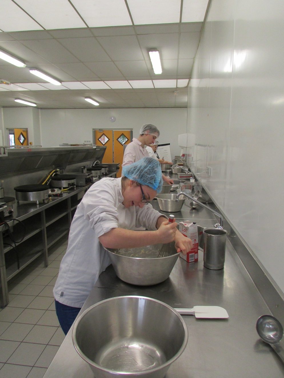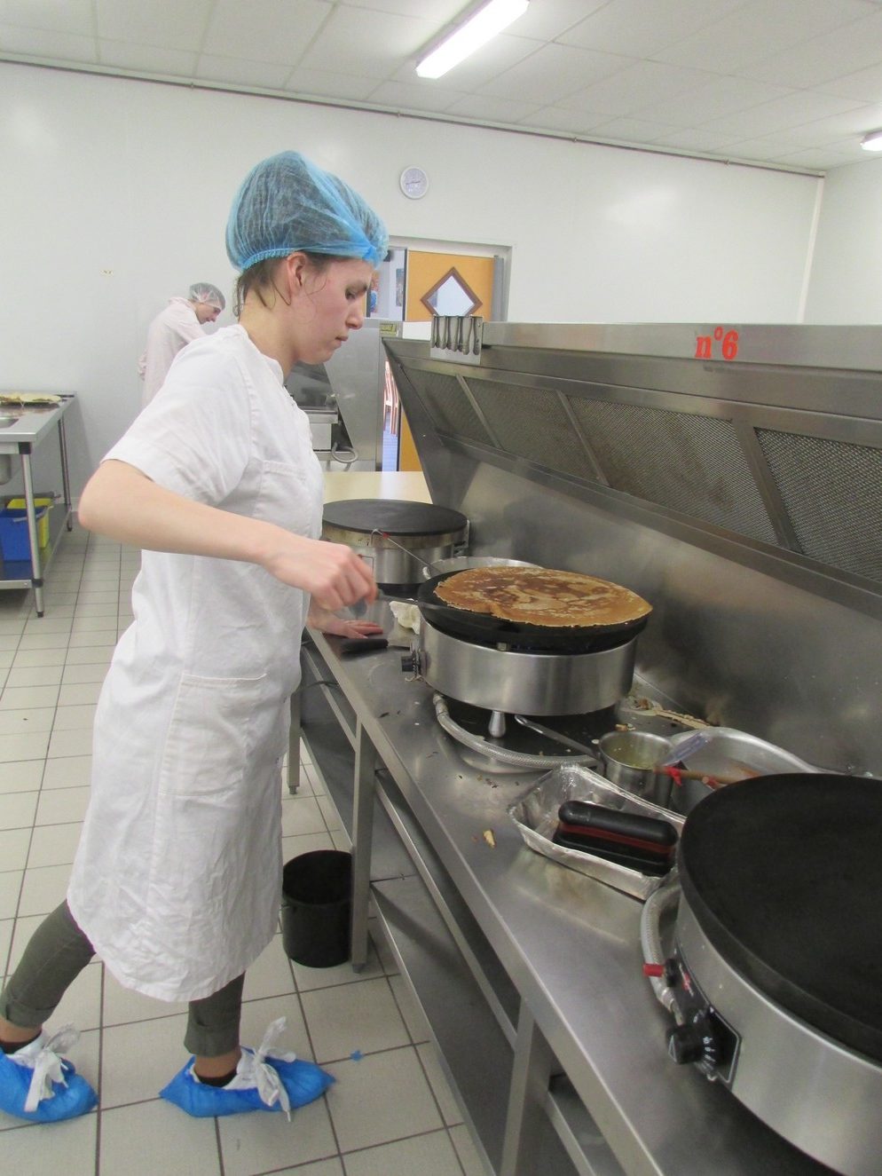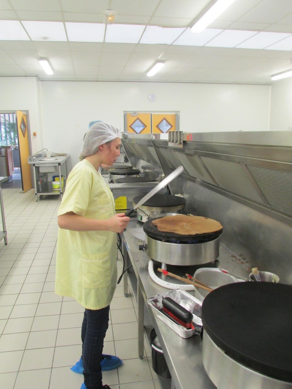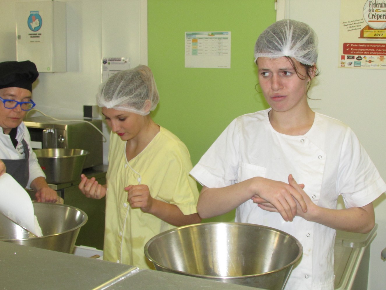 Grâce à ce partenariat, les jeunes ont été initiés aux techniques professionnelles de fabrication de crêpes et galettes bretonnes, battre la pâte à galette, tourner la pâte sur le Bilig et mieux connaître le matériel nécessaire et son utilité. Cet échange est très formateur pour les élèves pour expérimenter la complexité du métier de crêpier et la nécessité d’être exigent en matière d’hygiène et de sécurité. Enfin, le deuxième groupe, en fonction du planning du CFA a pu bénéficier le dernier jour d’un déjeuner amélioré avant Noël au restaurant et servi par des apprentis de Première année.