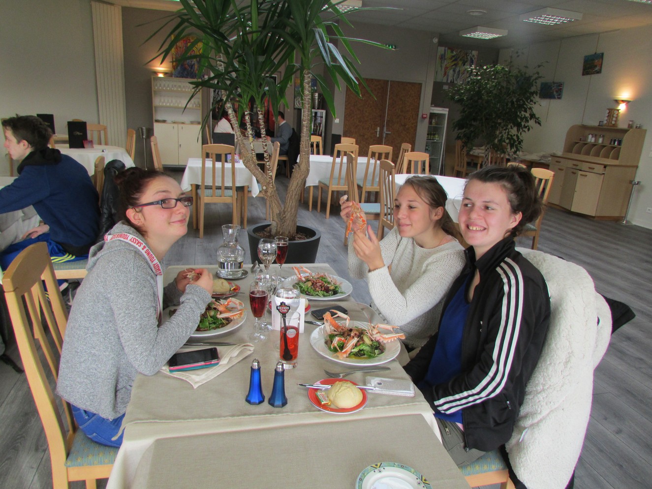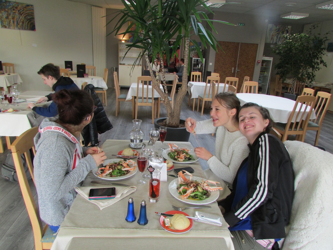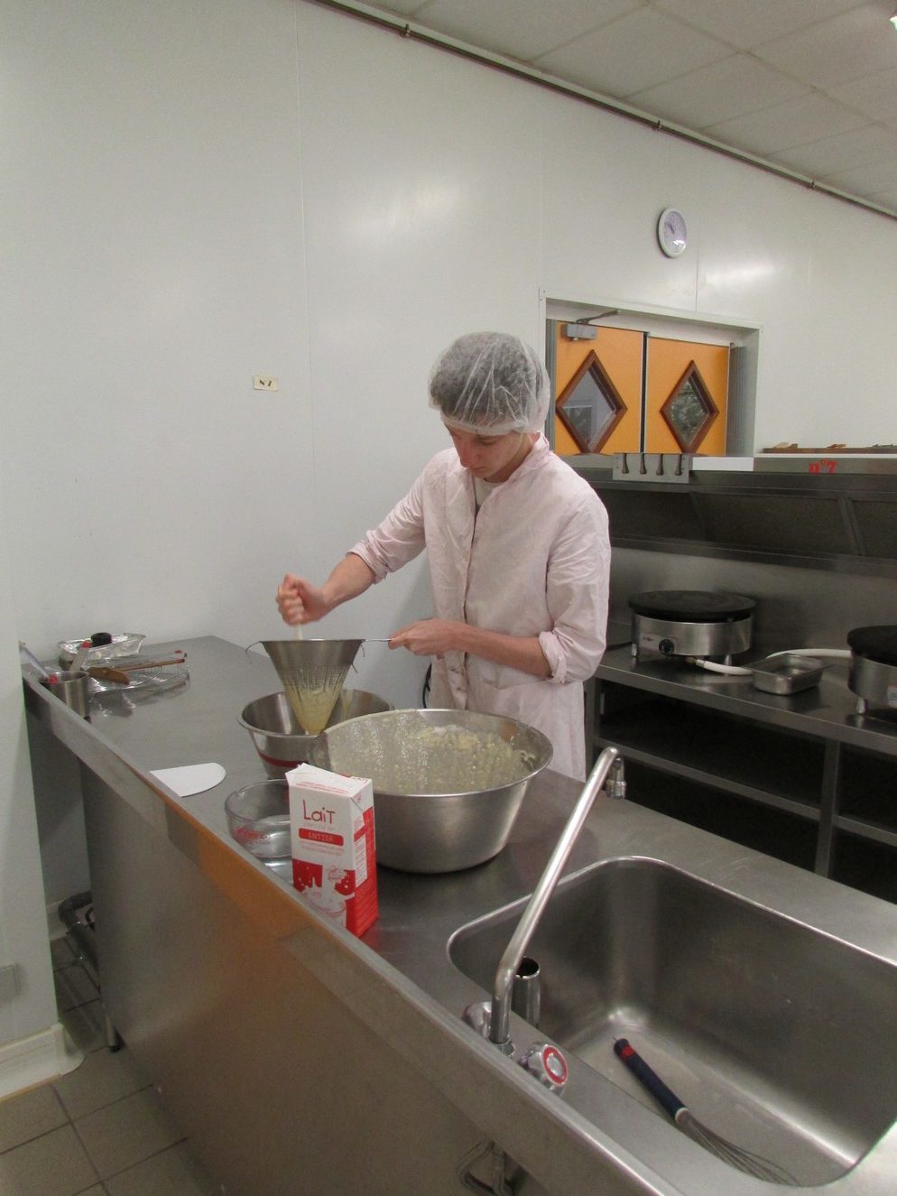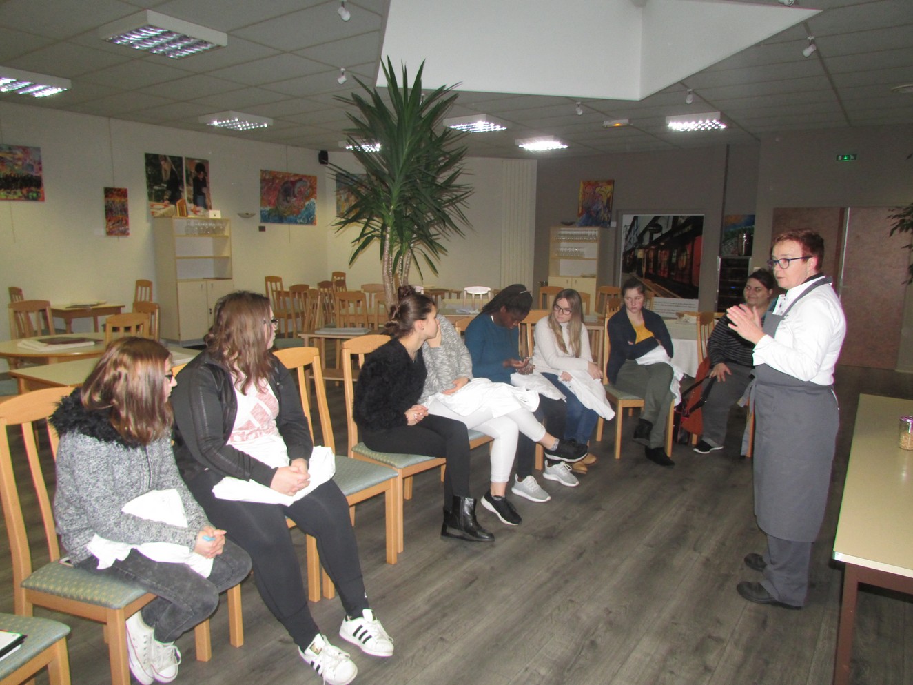 Grâce à ce partenariat, les jeunes ont été initiés aux techniques professionnelles de fabrication de crêpes et galettes bretonnes, battre la pâte à galette, tourner la pâte sur le Bilig et mieux connaître le matériel nécessaire et son utilité. Cet échange est très formateur pour les élèves pour expérimenter la complexité du métier de crêpier et la nécessité d’être exigent en matière d’hygiène et de sécurité. Enfin, le deuxième groupe, en fonction du planning du CFA a pu bénéficier le dernier jour d’un déjeuner amélioré avant Noël au restaurant et servi par des apprentis de Première année.