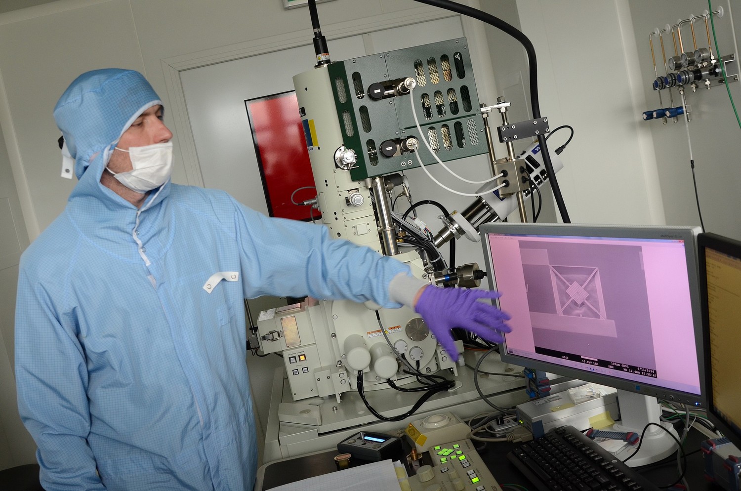 Dans les laboratoires de l’IETR (institut d’électronique et de télécommunication de Rennes) situé sur le campus de Beaulieu de l’université de Rennes I, les chercheurs caractérisent et inventent les nouveaux circuits à même de rendre les puces plus rapides en calcul et plus performantes. La « salle blanche » est l’un des lieux où s’élaborent cette cuisine nanométrique, puisque la matière y est domestiquée à l’échelle de l’atome.
